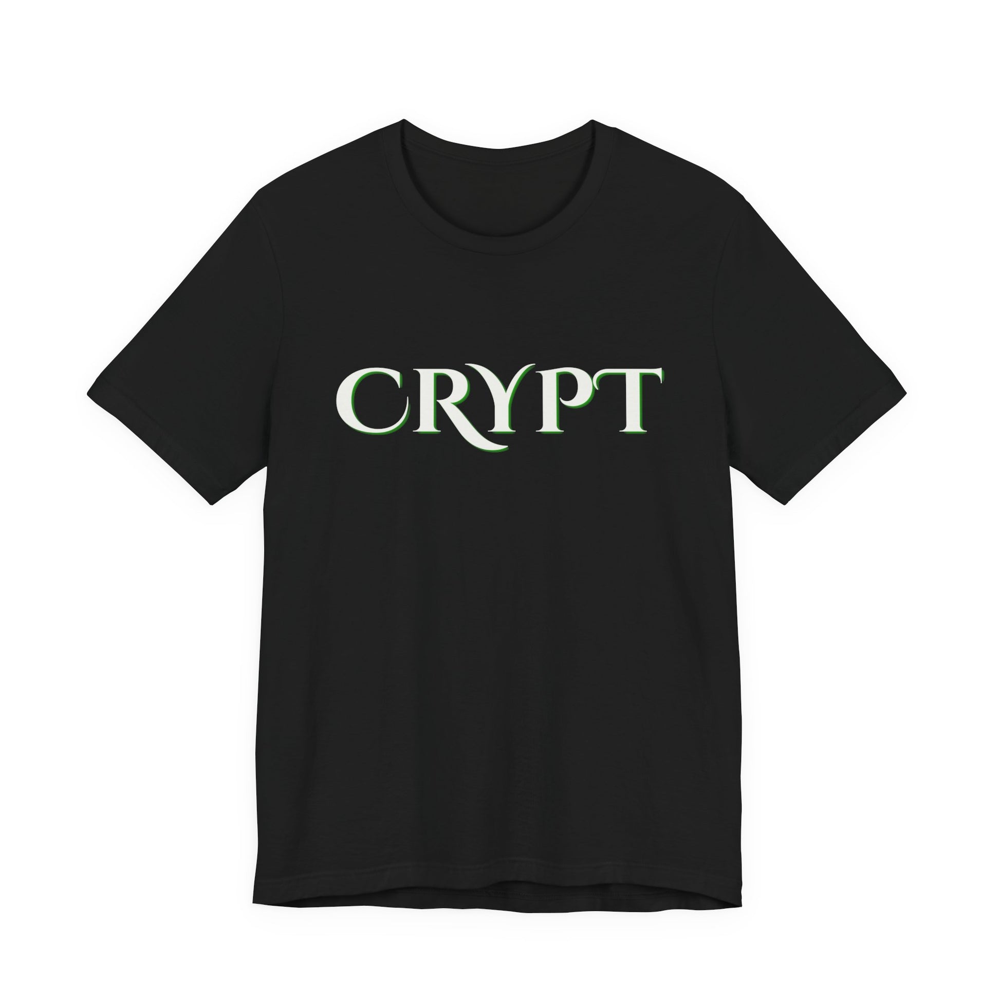 Step into the shadows with this Crypt gothic neon design, glowing in vibrant green against a deep black backdrop. Perfect for fans of gothic fashion, occult style, and alternative aesthetics, this bold text graphic makes a striking statement on any T-shirt, hoodie, or accessory.