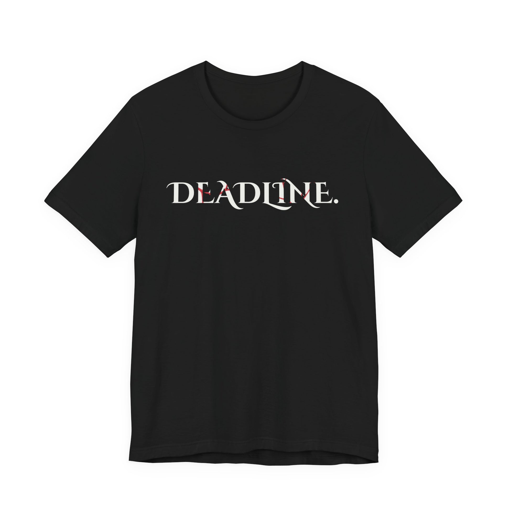 Face the Deadline in style with this gothic-inspired text design. Featuring bold serif lettering accented with eerie red thread lines, this design combines dark humor, horror vibes, and gothic elegance into a striking graphic that looks perfect on black T-shirts, hoodies, and accessories.