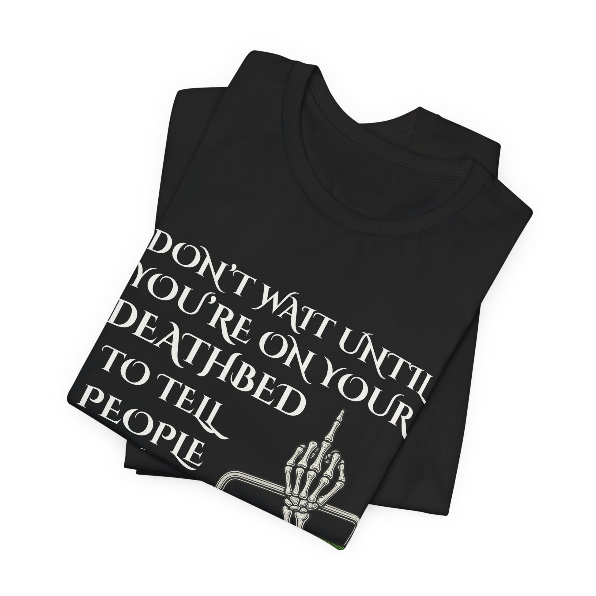 Dont Wait Until Youre on Your Deathbed Skeleton Shirt Dark Humor Middle Finger Design