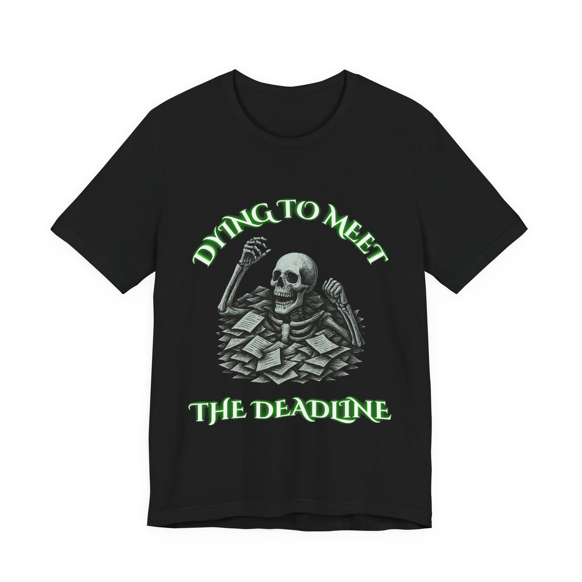 Dying to Meet the Deadline Skeleton Shirt | Funny Dark Office Humor Tee | Working Stiffs by Gallowmancy