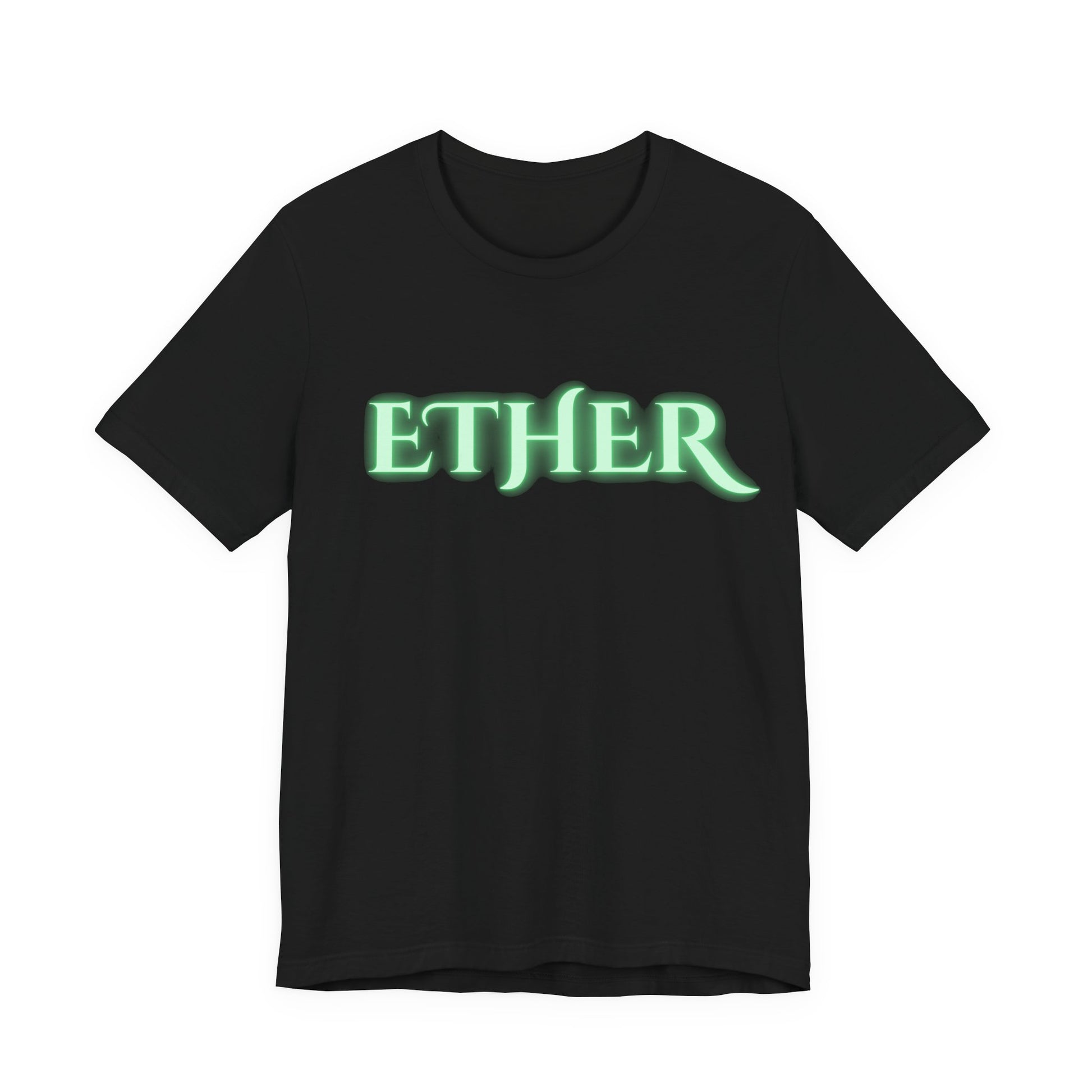 Channel the mysterious Ether with this glowing gothic word design. Featuring elegant serif lettering surrounded by a luminous green aura, this design radiates otherworldly energy. Perfect for fans of gothic fashion, occult aesthetics, and glowing neon visuals, this piece makes a bold statement on black T-shirts, hoodies, mugs, and more.