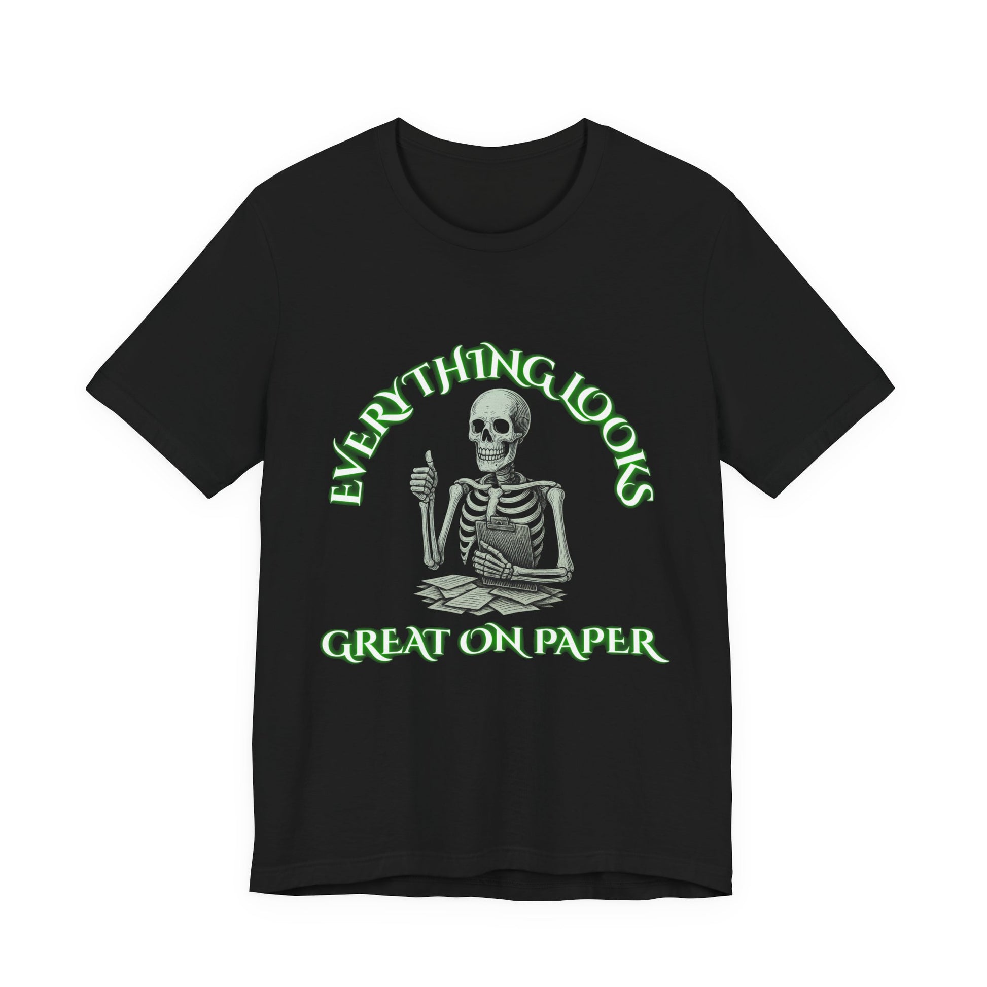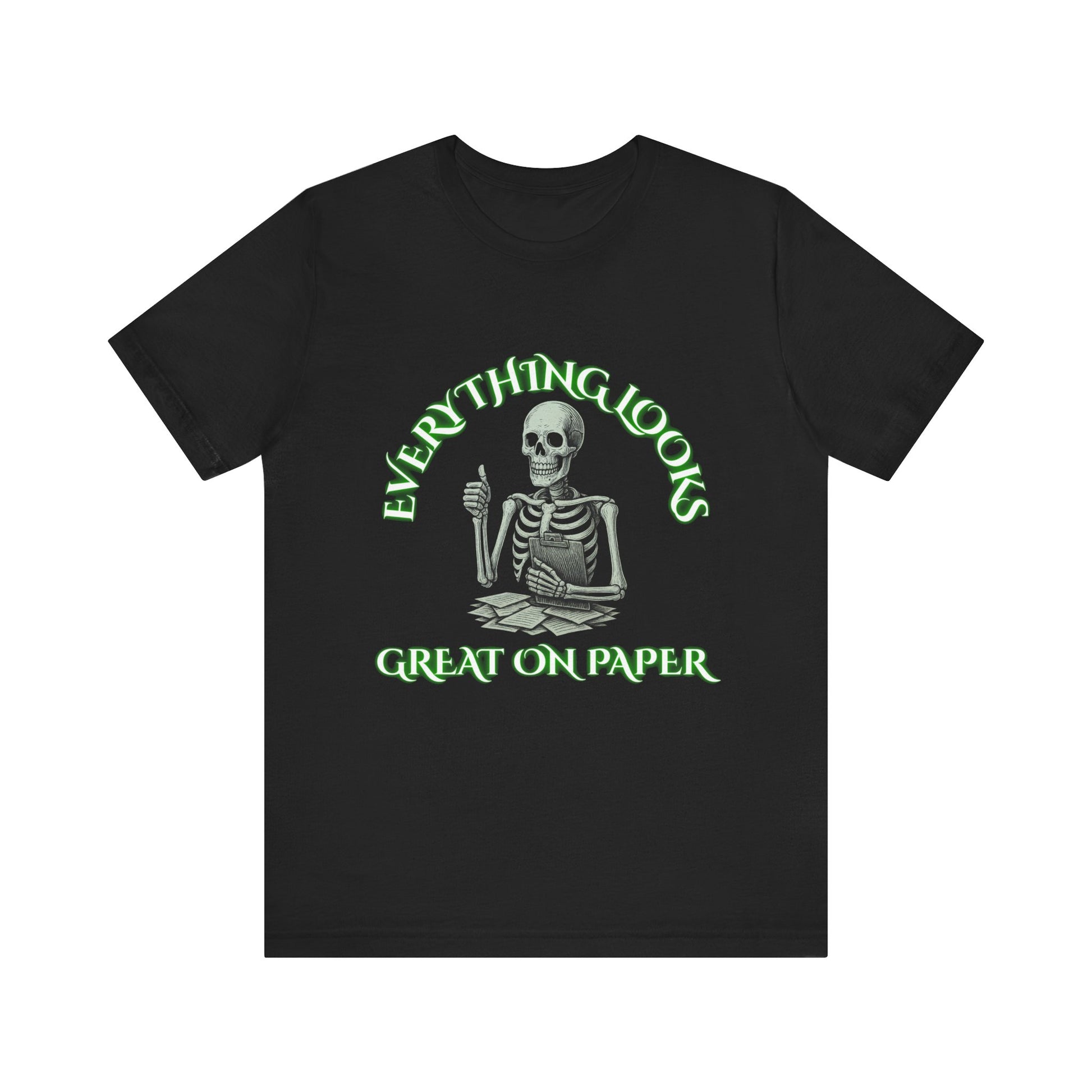 Everything Looks Great on Paper Skeleton Shirt | Funny Office Sarcasm Tee | Working Stiffs by Gallowmancy