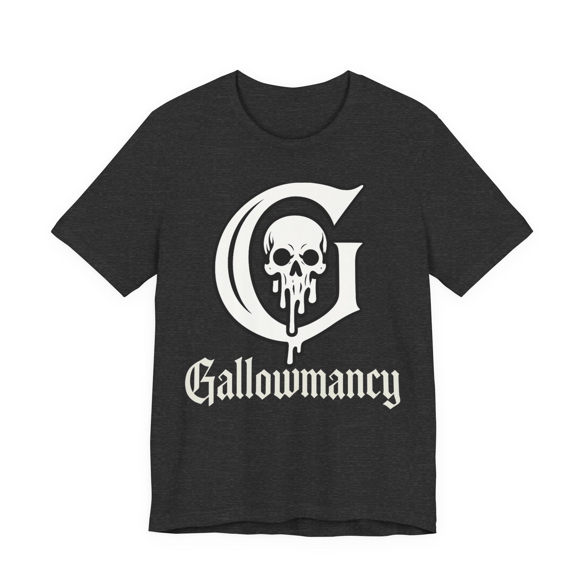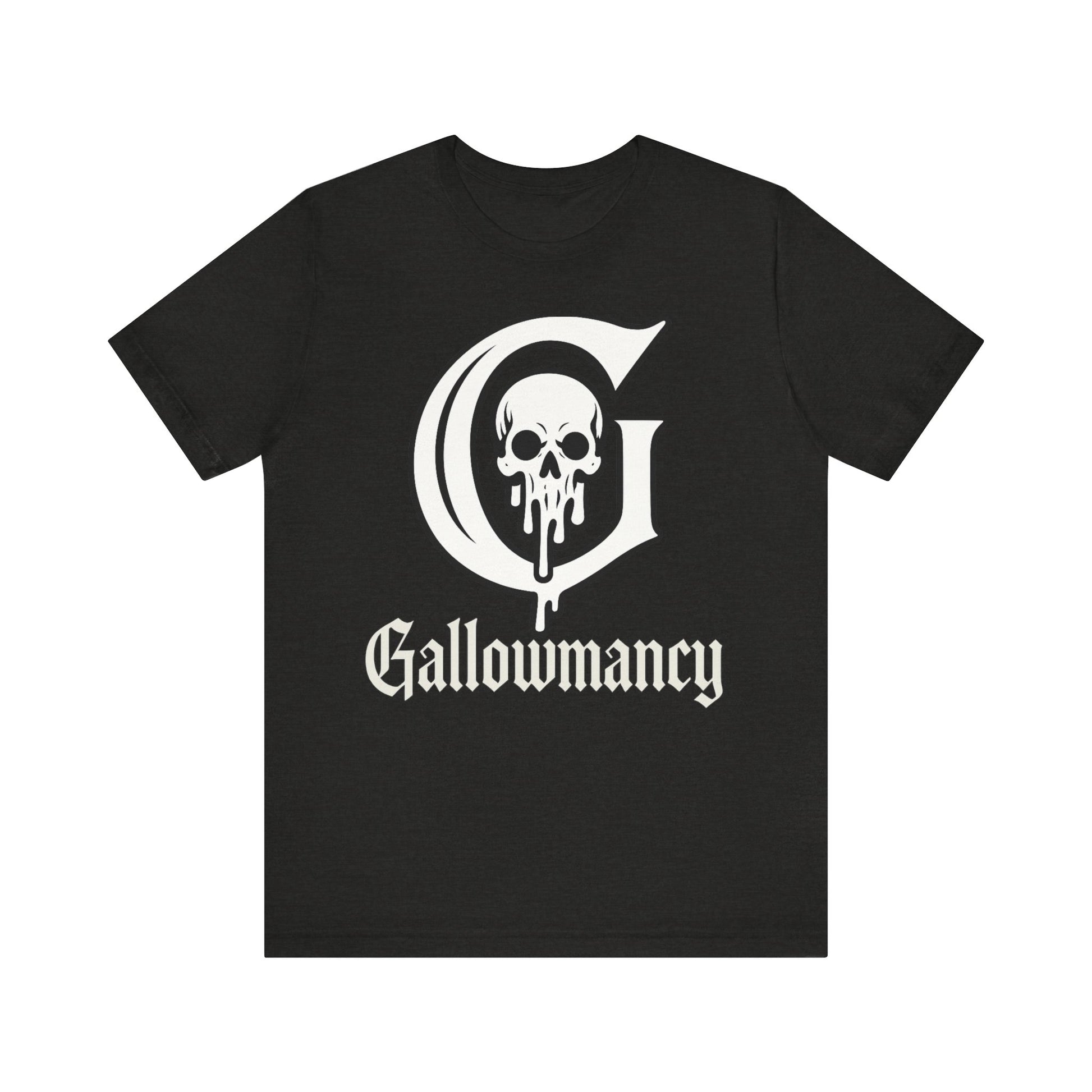 Represent your favorite gothic-inspired brand with the official Gallowmancy Logo T-Shirt. Featuring the bold and distinctive Gallowmancy name and logo, this tee combines a dark aesthetic with a nerdy, tongue-in-cheek edge.