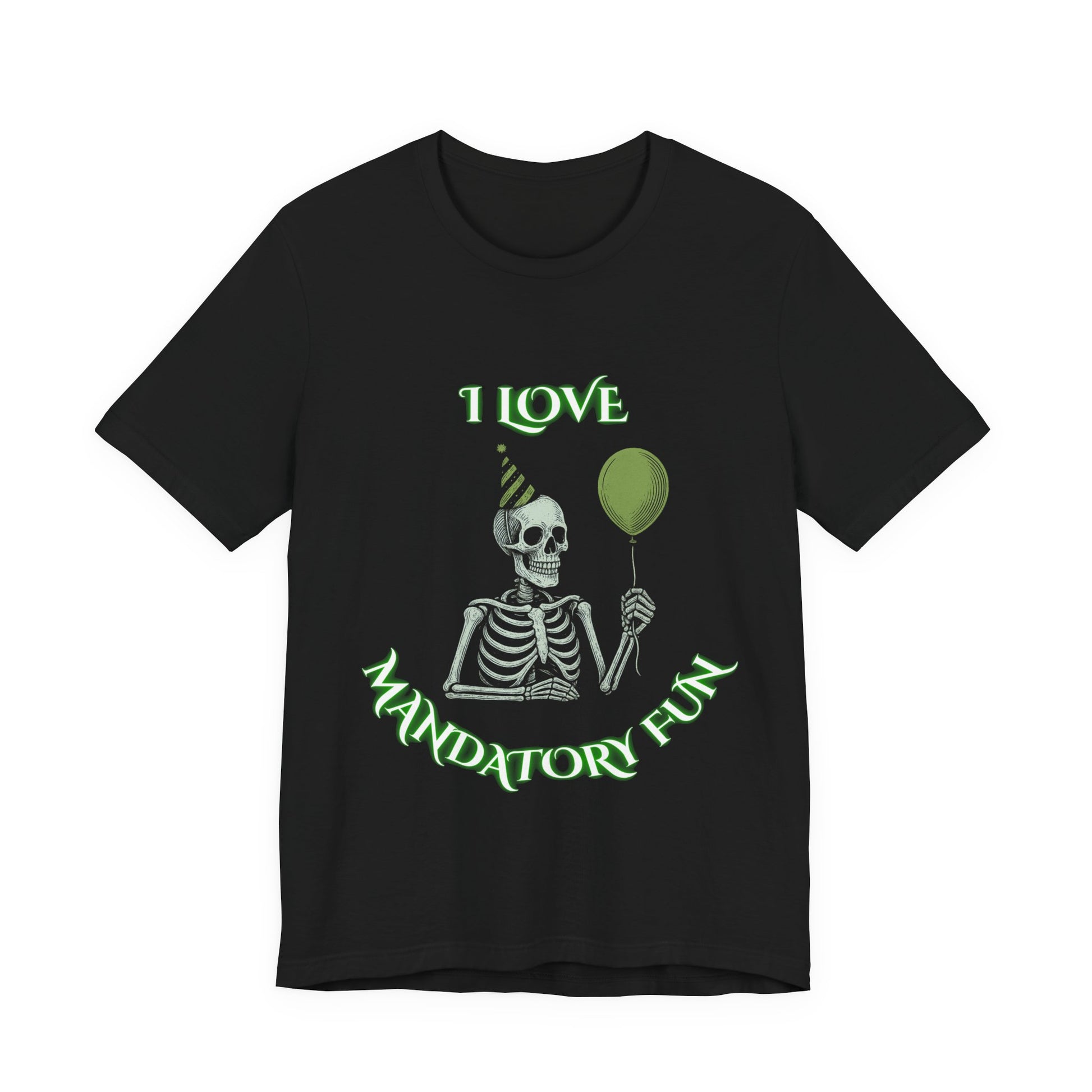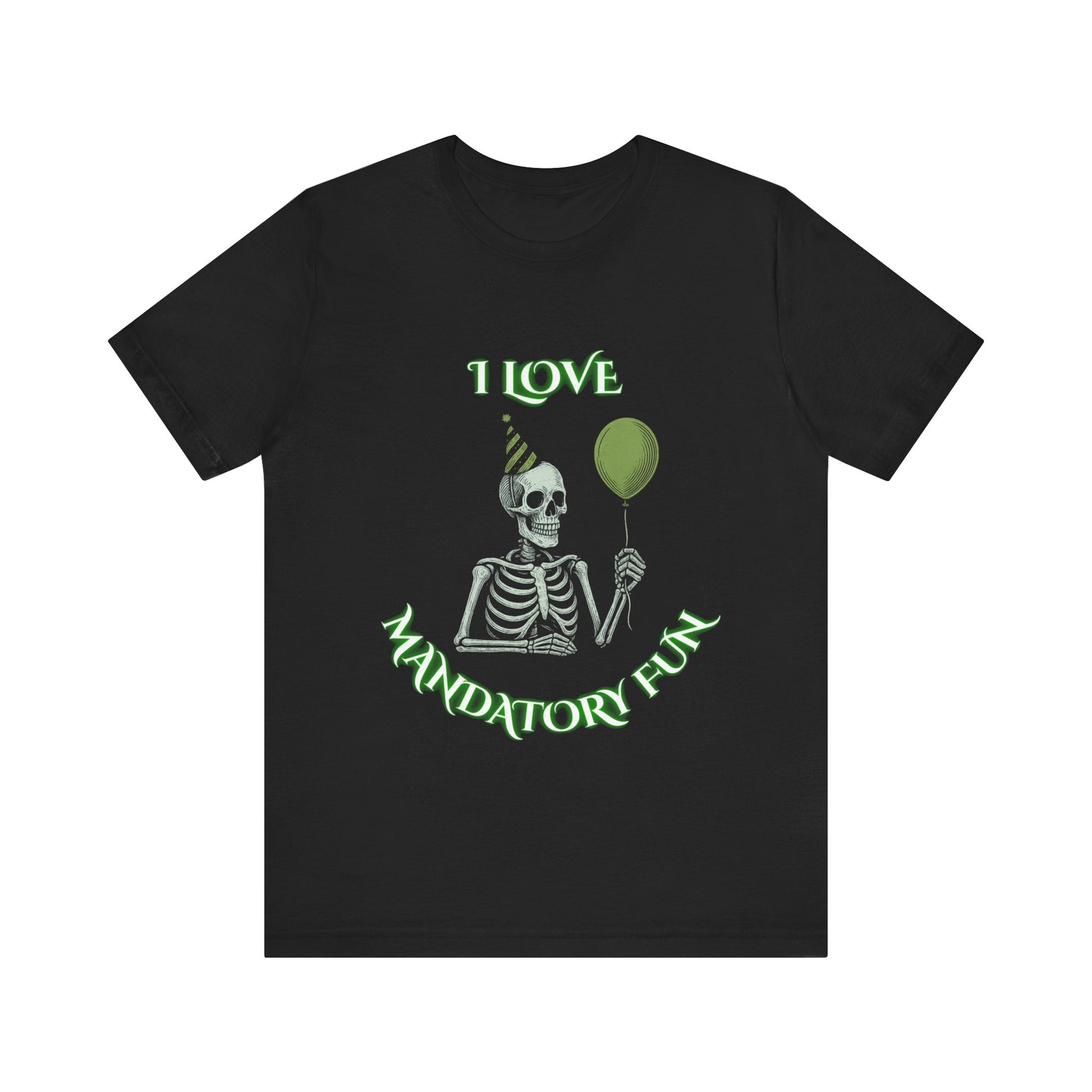 I Love Mandatory Fun Skeleton Shirt | Sarcastic Office Party Humor Tee | Working Stiffs by Gallowmanc