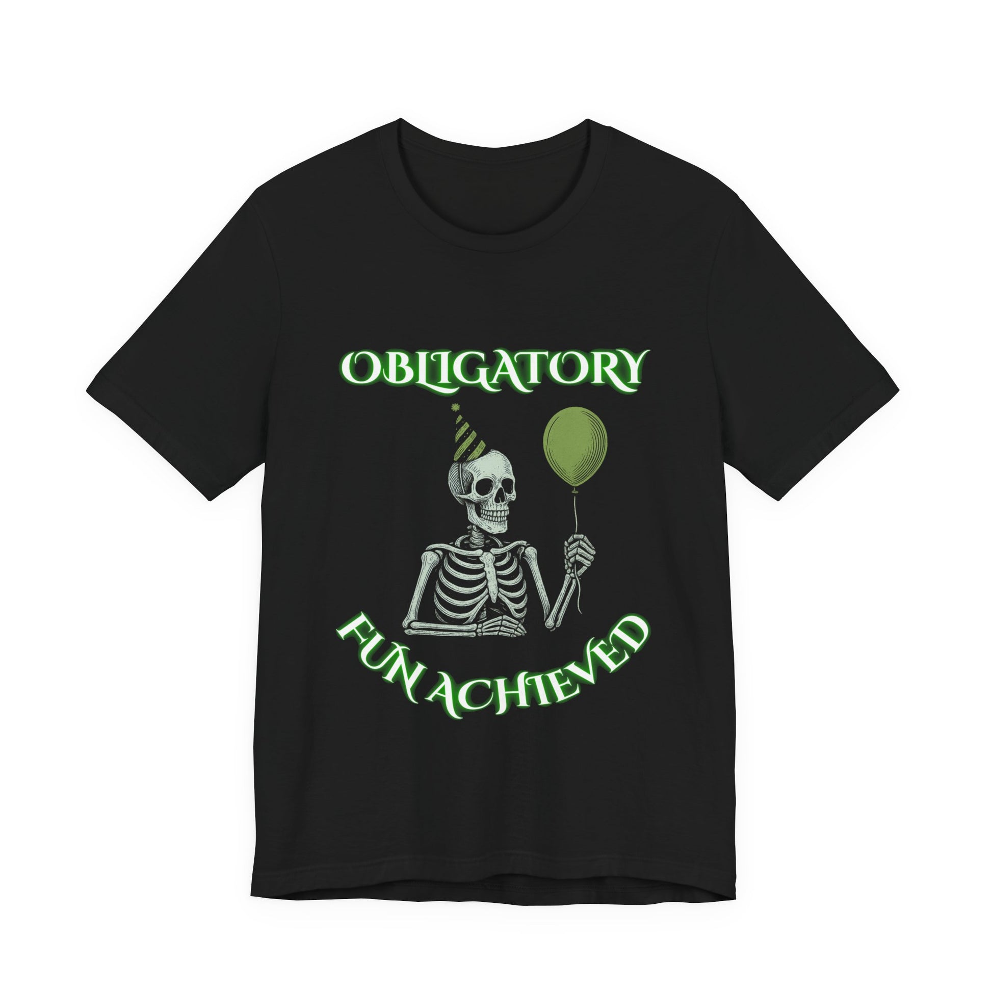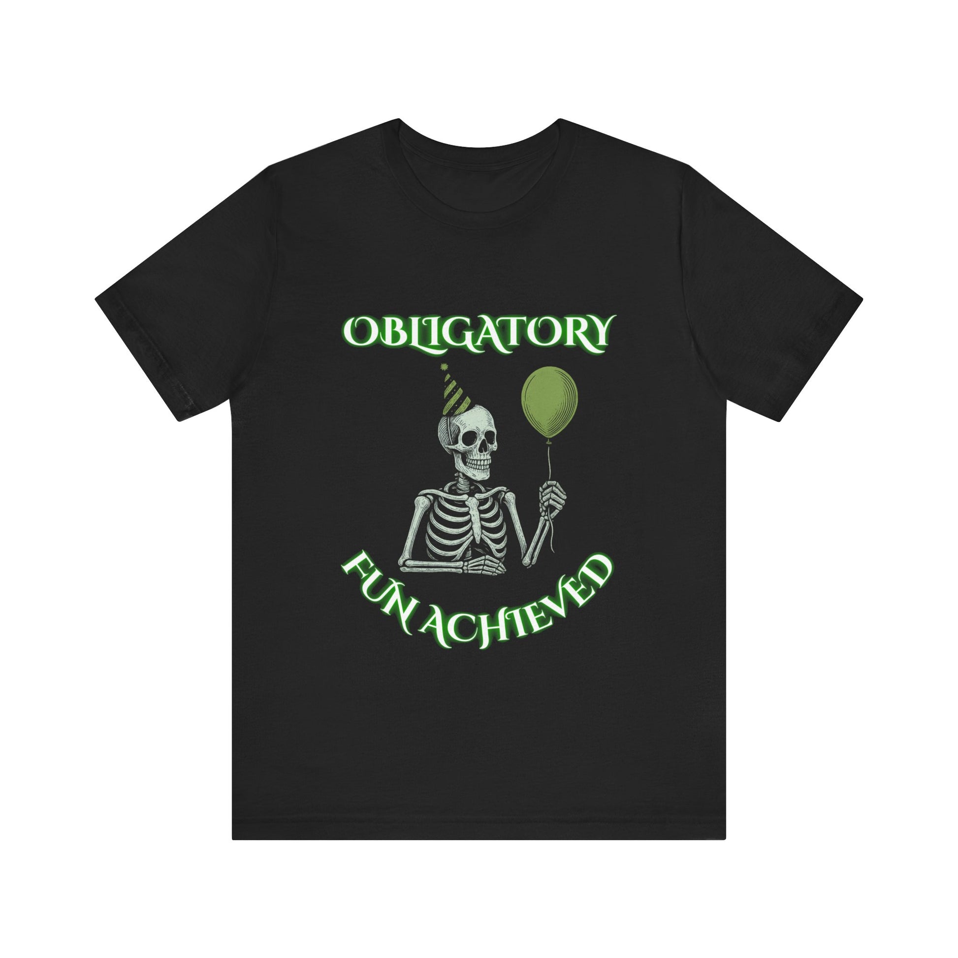 Obligatory Fun Achieved Skeleton Shirt | Funny Office Party Humor Tee | Working Stiffs by Gallowmancy